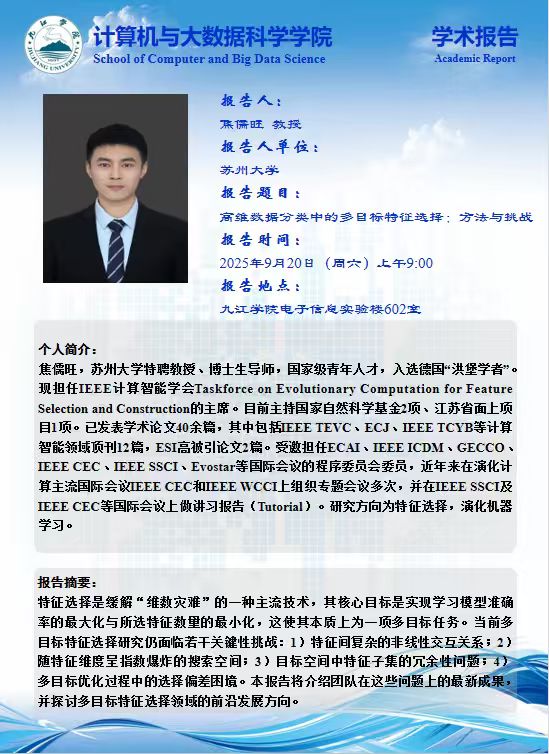 2025年9月20日学术报告(焦儒旺 教授,苏州大学)