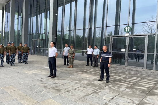 军训场地上,同学们整齐的步伐、铿锵的口号、挺拔的军姿,展现出昂扬向上的精神风貌。休息间隙,吴维勇对同学们的训练成果给予充分肯定,并与武警教官亲切交流,他鼓励同学们将军训中锤炼的毅力转化为求知动力,还详细询问了军训保障措施,要求相关部门做好防暑降温、医疗保障等工作,确保军训安全有序。