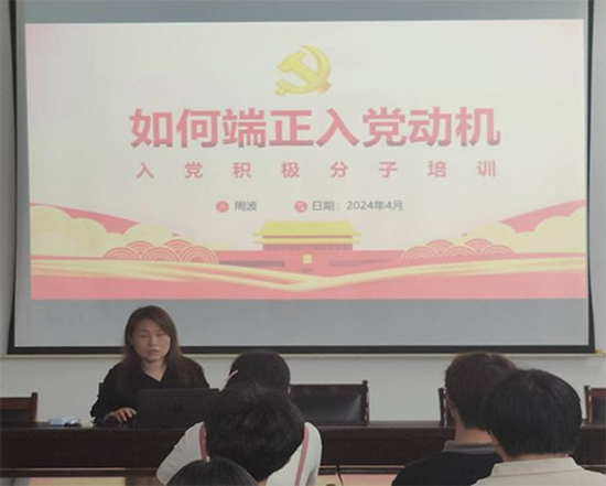 4月15日,万象城娱乐awc线路组织员周波老师为学院入党积极分子作题为“如何端正入党动机”的专题讲座。