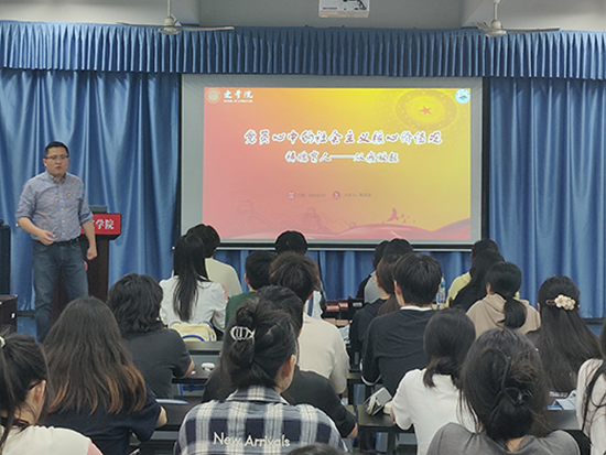 接着,杨思迪以“党员心中的社会主义核心价值观”为题讲授党课。从“积极”入手,呼吁全体入党积极分子要从小事做起、培育正确的观念;以“文明”为例,与全体入党积极分子进行讨论交流,内容涵盖“衣食住行”等多重方面。
