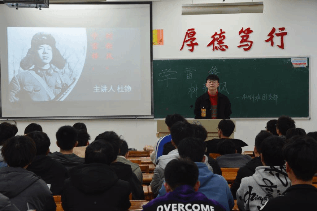 活动伊始,各班团支书通过ppt和视频等形式向同学们讲述了雷锋的生平以及为人民服务的典型事例,使同学们更加真实地了解了雷锋同志,体会了“学雷锋”的深层意义,明白在自己平凡的岗位上做力所能及的小事便是弘扬雷锋精神。最后,他号召全体同学学习雷锋勤奋好学的“钉子精神”、为人民服务的高尚品德以及传承其艰苦奋斗的优良作风。