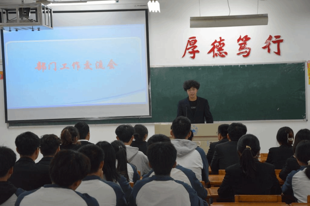 随后学生代表张泽豪发表对部门工作的看法,他认为部门工作的重点在“交流”方面,有效的交流可以节约工作时间、提高工作效率、锻炼语言沟通能力、避免不愉快的摩擦。实践证明,交流不仅会促进人才的流通,达到工作经验和能力的互补,在此过程中还可以发现自己的不足,并给予完善,形成先进的理念和务实的工作作风。