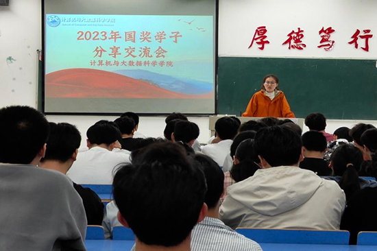 为加强学院学风建设,充分发挥国奖学子榜样示范作用,激发学生的学习兴趣,计算机学院于4月2日晚在文友楼618举办国奖获得者学习分享交流会。2020级数据科学与大数据技术专业的孙汐晨同学进行了学习经验分享。