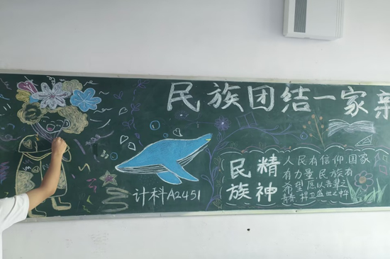为深入推进民族团结教育,促进各民族共同团结奋斗、共同繁荣发展,九月中旬,万象城娱乐awc线路围绕民族大团结主题在文友楼开展了黑板报创作活动。本次活动以“民族大团结”为主题,通过图文并茂的形式,生动展现了中华民族多元一体的历史渊源与文化底蕴。