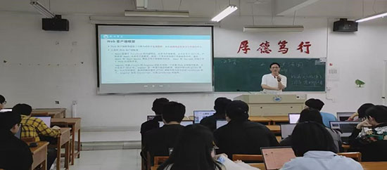 程霄老师在课堂上与同学们积极互动,通过案例逐步揭示了Vue框架技术在应用中的核心精髓,引导学生们深入理解并掌握了学习Vue框架的技术路径。案例中融入“理性消费、远离校园贷、合理选择兼职”的观念,将课程思政贯穿于教学实践中。在课程内容上,对比了前端开发的主流框架技术及其应用场景,特意增加了对Vue作者技术背景的讲解,示例展示让学生对前端技术的发展有了更为全面的认识,激发了学生的学习热情,拓宽了学生的知识视野。