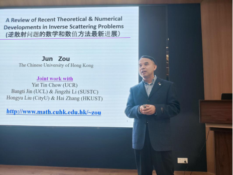 邹军教授从回顾反散射问题的基本物理背景和它们的广泛应用开始,讲解了反散射问题的基本数学理论以及数值方法的发展,讨论了一些有效的、用于声学和电磁波反散射问题的直接采样式重建数值方法。最后,邹教授对一些典型的非线性反问题的直接采样方法的一般框架进行了介绍。