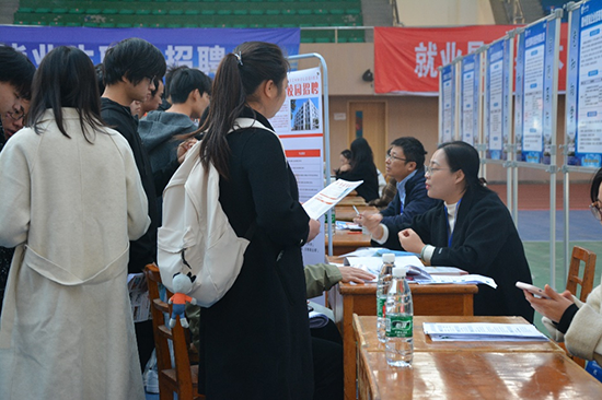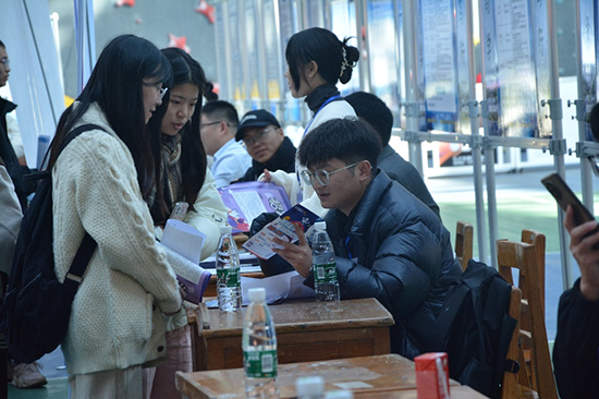 招聘会现场,同学们满怀热情参与活动,手持精心准备好的自荐书和简历,积极与用人单位交流,主动了解用人单位的情况。各参展单位也展现了诚意来吸引毕业生;有的用人单位代表积极询问路过展位的应届生所学专业以及求职意向,对符合要求的学生详细宣传本公司的优势与福利;有的用人单位则面对面建群,进一步宣传招聘政策。